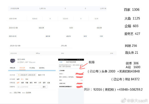 徐大sao首次公布鸡腿视频收益:999.4万播放量,(激励)收益为4855.31元。2月累计所有充电量为1135941.9元,扣除服务费还有795159.34元。但此举却遭到大量网友质疑,为何收益数字不符合他近400万粉丝的情况。