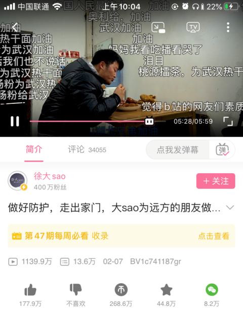 B站知名UP主“徐大sao”2月7日发布了一则名为《做好防护,走出家门,大sao为远方的朋友做了一顿特殊的炸鸡腿》的视频,视频中他承诺会捐出该视频的全网收益。