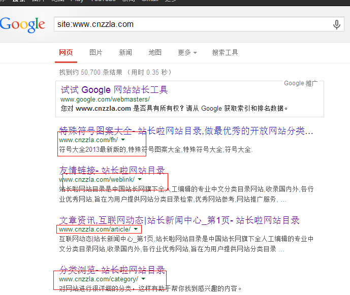 你用site:你的域名,你会发现你的所有收录都只显示主域名,其他的二级目录或者N级链接全部不见,这个在百度历史上还没有出现过呢!然后你对比下搜索老大谷歌,连谷歌都没有这样做?百度敢这样牺牲用户体验做尝试?站长啦觉得不会。